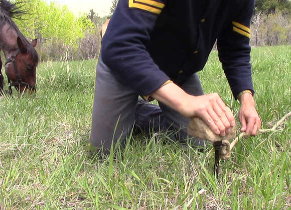 Upgrade your gear to include an authentic Civil War hand forged picket pin with ring. This pin was modeled after one found near Gettysburg PA which matched the Quartermaster specifications which were: Length, 14 in. Diameter at swell, 4 in. from point, .75 in. ; at neck, .5 in. ; at head, 1 in. Lariat-ring, .2-in. wire, welded. Int. dia meter, 1 inch. Weight of pin, 1.25 lbs.